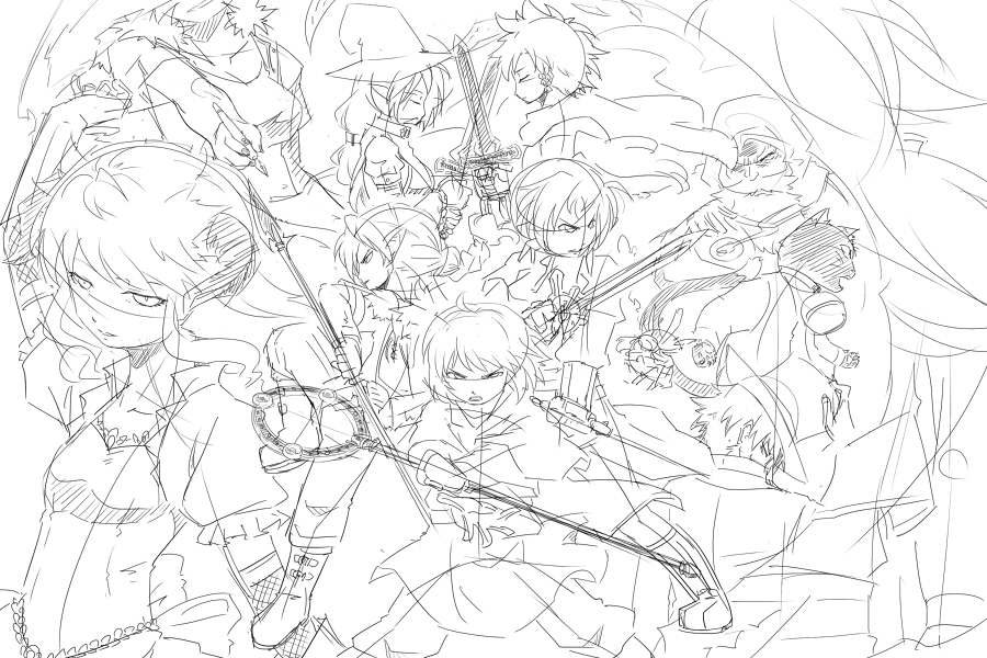 サイトをブラウザサイズに合わせて表示したいとか言ってましたけど、ちょっと無理くさいです;; 合わせるだけなら出来たんですが、装飾用に用意した画像が上手く表示されないというか・・・画像も一緒に伸びたり縮んだりするんですよね。 トップページのキャラの立ち絵もサイズ合わせるの難しいですし・・・ページ丸ごと画像で用意してクリッカブルマップみたくすれば、やれなくもなさそうなんですケド・・・そこまでやるなら一から作り直す方がマシかも; ってか、創作サイトなんだから凝るのはソコじゃないだろと言う、セルフツッコミ(´・ω・`) そんなワケで、新しいレイアウト思いつくまでは今のしょんぼりサイズでいきます・・・orz ずっとキーボード叩いてばっかりで、いい加減絵も描きたくなってきたので。 完成するかも分からない一枚絵のラフ。 よその子だと集合絵描けるのに自分トコのキャラだとモチベーション保てない謎仕様なので、お蔵入りの可能性大なんですが・・・w ギャラリーのページ自分の描いたイラストまだ無いんで、完成させたい所ではあります。 続きからMoL2部の敵キャラデザインとメモ。 「ち、ちぬ」 「・・・何か、すごく独創的なアホ毛が立っているわ」 サイトのリフォームしたばっかりですが、また弄ってます。 今、全体が800px×750pxの構成になってるんですが、大きな画面で見るとしょんぼり感がハンパ無い気がしたので、ブラウザに合わせてサイトのサイズが変更されるように組み直しています。 1週間弱かかってようやくトップページだけ改装できましたが、CSSが他のページにも干渉してレイアウト崩れるので、もうしばらく今のままです・・・(´・ω・`) あまり大き過ぎるモニターだとバランス悪いかもですが、ウチの持ってるPCでは1440×900の環境までしか確認出来ないのでよく分かりません。 とりあえず、一通りレイアウト組み終えたら、アップロードしてまた続きの作業していきたいと思いまっす。