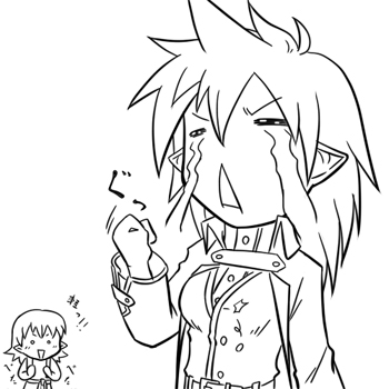 遅くなっちゃったけど、しっしーコメントありがとでした!!ウチがんがるよ! あまり暗い日記だらだら書いていくのもあれなので・・・ テンション↑↑でいくYO(゚∀゚) ニヴヴ「・・・張り切ってるところ、申し訳ないのだけど」 ニヴヴ「今日はあなたの出番はあまりなさそうよ?」 かいる「あれ、どうしてここに?」 ニヴヴ「アヲノさんからバトンを頂いたのよ、私宛てに」 ニヴヴ「あなたが落ち込んでた所為で回答が遅れてしまったのだけど・・・」 かいる「申し訳ないですorz」 ニヴヴ「うふふ、それにしても・・・困ったわね」 ニヴヴ「私、こう見えても忙しい身なのよね。仕事ほったらかして来ちゃったケド」 ニヴヴ「ちゃんとこの埋め合わせはしてもらわないとね。」 ニヴヴ「そうねぇ、一度ゆっくり二人っきりでお話してみたいわ、私の部屋で♪」 かいる「アヲノさん逃げてーッ!!」 【連想バトン】 半分強制 半分絡みたい方 電柱の影から見ててもいいですか!?な方へ 指定された方がやる。自キャラを持っている人は自キャラ口調へ ない人は自分へ 回す人5人とそのキャラ 葉乃 ゆう様:ピチカートさん 遥崎 飛乃様:ラクセルさん ちくわ様:ディモーダさん 信者A様:オフェリーさん 宍戸 モモ様:マープンさん 指定:ニヴヴ 「読んでくれてる方のご期待に添えられればいいのだけど」 「私もこういうの初めてだから、至らない事もあるかも知れないけれど しばらくお付き合い頂けるかしら♪」 2.何故その5人? 「とても素敵な絵を描かれる方よ。 可愛らしい絵や温かみのある絵、見る人に元気を与えてくれる絵。 皆それぞれ違うけれど、私はどれも好きだわ」 「そうそう、指定されても回答するかどうかはお任せするわ。 すでに答えてしまっている方もいる様だから」 3.その人を漢字1字で表すと? 「そうねぇ、葉乃さんは”麗”ってトコかしら。 遥崎さんは”賢”で、ちくわさんは”温”ね。 信者Aさんは”輝”、それから宍戸さんは”活”。 私のイメージとしてはこんな感じかしら?」 4.その人を動物にすると? 「葉乃さんは猫のイメージね、ふわふわしたのじゃなくて少しシャープな感じの。 遥崎さんは鳥、どちらかと言うと渡り鳥の様な。 ちくわさんは犬かしら?少し大きめで毛は長めね。 信者Aさんも宍戸さんも、兎・・・と言うのは安易かしら」 5.その人を季節にすると? 「葉乃さんは冬、一面きらきらした雪の様な。 遥崎さんは夏、カラリと晴れた夏の陽のイメージだわ。 ちくわさんは初春、花の香りが漂い始める位の時期ね。 信者Aさんは秋かしら、鮮やかに染まった木々のイメージ。 宍戸さんは晩春、世の中に活力が満ちて来る季節だと思うの」 6.その人を空にすると? 「うーん、ちょっと難しい質問ね。 そうねぇ・・・葉乃さんは日食の空、っていうのは有りかしら。 遥崎さんはきれいな青空。 ちくわさんは朝焼けの空で、信者Aさんは夕焼け空。 宍戸さんは満天の星空って感じかしら・・・。」 7.その人を楽器にすると? 「葉乃さんがフルートで遥崎さんはピアノ。 ちくわさんはバイオリンのイメージかしら。 信者Aさんはトランペット、宍戸さんはドラムでどうかしら?」 9.その人へ一言 >葉乃 ゆうさんへ 「随分と偏った回答になってしまったけれど・・・大丈夫かしら」 >遥崎 飛乃さんへ 「漫画を描く才能を少しかいるにも分けてあげて欲しいわ」 >ちくわさんへ 「かいるがセルティスさんにリベンジしたい、って呪文の様につぶやいてるの・・・何のことかしら」 >信者Aさんへ 「うふふ、先日はどうもお世話になりました♪」 >宍戸 モモさんへ 「いつもバトン回してくれてありがと、かいるすごく喜んでたわ」 >最後に、回していただいたアヲノさんへ 「御無沙汰しております。 バトン回して下さってありがとうございました、楽しませて頂きましたわ。 うふふ、実はかいるも頻繁にそちらのサイトにお邪魔してるみたいで、 いつも楽しく拝見させて頂いております。 現在、創作漫画の2話を執筆中との事で、私も陰ながら応援させて頂きますわね」 PR 指定された条件でのオリキャラ・夢主のIF設定を考え、妄想を綴るバトンです。絵描きの方はIF設定でのその子のビジュアルも考えてみるといいかもしれない! ※下記の○○の部分にはオリキャラ・夢主の名前を当てはめてください。 ※複数キャラで回答可。 ※若干夢主さん向き。 ※質問は削っても追加してもokです 。 ★_もしも○○が敵サイドのキャラだったら なんだか似合ってしまってる気がしますが・・・彼は魔導師じゃないのでどうせ下っ端でしょう(ぁ ★_もしも○○が非戦闘キャラだったら 飛ばしちゃいました、すみませ・・・っ ★_もしも○○が二重人格だったら 黒コーネルと何かされたラッチェン。 いつもイジメられてるのに立場が逆になりました、ガクガクブルブr ギャグっぽいのはやっぱりコーネルが描きやすいなぁ(笑 ★_もしも○○が特殊設定持ちだったら セネトアなら世界征服くらい企んでも不思議じゃない(エェ!? そんなの