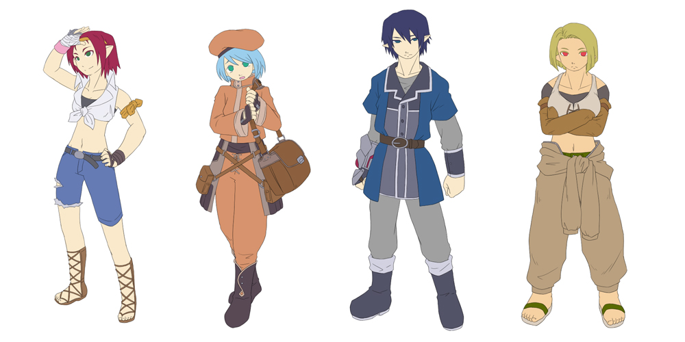 人に相談しても気にするなって言われるだけで・・・でも、それが出来ないから凹んでる訳でorz いっそ関わりを絶ちたいとも思ったけど、相手の人は良い人なんですよ凄く。 憧れて尊敬もしてるし、ウチ自身良くしてもらってます。学ぶ所だってあるはずだけど、差があり過ぎて見てるのが辛いんです。 大体、そんな事で逃げ出すなんて筋が通らないワケで。 結局やれる事やるしかないんですよね・・・。 ちくしょー、追いつきたいよ。余計な感情無しで向き合えるようになりたい。 話は変わって、キャラ紹介絵の描き直しやってます。 順番にやってるとまた途中で止まっちゃいそうなので、気が向いたのからやっていきまっす。 サイトのトップには書きませんでしたが、8キャラ変更済みです! 今描いてる4人。 左からファミン、アリーヤ、リューザ、シャノン。 前々から薄々気付いてはいたんですが、自分の絵に対する違和感の原因が分かった様な気がします。 色塗り云々に関してはまだ手探りですが、頭身が5頭身から7頭身になりました。 今まで手クセで描いてたのでなかなか慣れませんが、こっちの方が自分の中ではしっくりきてます。 遅くなりましたが続きから私信ですー;; アライノブさんへ アライノブさん、おくにさん素敵なお子様をありがとうございました!! PR