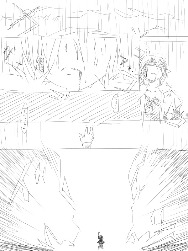 http://yumeochi.6.ql.bz/index.htmlそんなわけで、なんとかCGIの使えるサーバを借りてメンバーリストを実装しましt・・・ スタイルシートの適用方法がわかんなかったりで、レイアウト崩れたりしてるページもあります;; 数日粘ったけどこれが限界ですもう勘弁してくだしあ(´;ω;`) Firefoxなら正常に見れますが、IEとSleipnirで確認したらちょっと違ってました。 個人ルールの設定も容易になったので、もし追加した方がいい項目があれば、拍手かBBSかコメでお願いします。コメント欄もあるので細かなお断り要素はそこに記入してもいいかも知れません。 企画の連絡用メルフォはまだ機能していませんorz 登録はして頂いても構わないのですが、まだルールのページも開通してないので(普通は順番逆ですよね・・・)もう少し様子見た方が宜しいかと思われるのでした。 まぁ、問題起こる程人の目に触れてない筈なんで大丈夫でしょうけど・・・一応、自己責任でお願いしまっす お腹の調子がすこぶる悪くてテンション↓↓なんで、ラクガキいくつか投棄していきまーっす! 「アンタの気持ち、私にはちゃんと分かってあげる事は出来ないないけど・・・でも、そんなのやっぱり・・そんな事ルミルには言って欲しくない・・・」 とある、自殺志願者との出会い。 成人化したハイエルフのシトリン。 遠距離攻撃型で、自分の血に込められた負の感情を楔状にして敵に打ち込み呪い殺す技だったブラッディ・ロアも、魔導術を習得して2本の剣状にして扱えるように。ヒューの剣術を見よう見まねで扱うので、技術面ではかなり拙い。 かすれば、人間相手だったら即死させる威力を持ってた強力な技も、今では憎悪の念も薄れて威力は著しく低下した。 逆に他の技は比べ物にならない程、威力の向上に成功している。 レオニス、爆撃弾使用時。 激しい反動で身体が吹っ飛ぶ。威力は絶大。 おかしな態勢で撃とうものなら最悪の場合肩から先が潰れる事も・・・。 ルミル魔導覚醒時、コマ割の練習に。 MoL今3Pくらい描いてて、モノクロだけど色の使い方というか、ページ単位の配色バランスが難しい・・・; 構想はほぼ出来上がってるものの、形に出来ずでなかなか難しいorz またしばらく創作の時間があまり取れなくなりそうなので・・・色々ともどかしいです。 とりあえず、まともにブログ書けてなかったので今回はラクガキだけですが。 創作自分用メモも溜まって来たので描いておきたかったのですが、時間が無いので次回にだらだら描きたいですー・・・っ あー・・・、企画案もなかなか進まないし、頭抱えたくなるような問題が山積みなのでした! 例の企画、ちょっと前向きに検討してみようかなぁ・・・なんて思ってます。 「わああああああああああああああーっ!!」 「・・・何?」 「ハッ・・・何だ夢かぁ・・・」 「起きてる時はただでさえ騒がしいのに、寝てる時まで